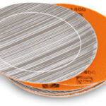 Pyramix sanding sheet|The Pyramix hook and loop sanding disc features a new perforation pattern which means it can now also be used after the first edge has been worn away. Ø 115 mm.|For removing minor scratches, creating sanding pattern, reducing roughness depth