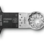 E-Cut standard saw blade curved|Set teeth for all wood, plasterboard and plastic materials, high cutting quality and speed. Curved cutting geometry for optimum plunging and clean precise cut edges, especially on smooth surfaces.|Wide shape for maximum cutting performance and long, straight cuts.