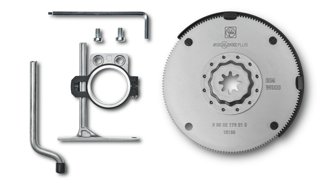 HSS saw blade set|Bimetal for long tool life. Set wood teeth. Outstanding tool life, high cutting quality and speed. As “mini circular saw”, ideal for long, straight cuts and for making cut-outs in laid parquet, laminate and wall panelling. The depth stop can also be used with many other FEIN accessories. For accurate working at depth. StarlockPlus fitting, suitable for all popular multi-function tools with StarlockPlus and StarlockMax fitting and for all FEIN MultiTalent and MultiMaster tools up until 04/16.|Scope of supply: 1 HSS saw blade, 1 depth stop (suitable for (A)MM 500 / 700)