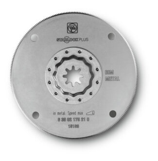 HSS saw blade|Bimetal for long tool life. Metal teeth for sheet metal up to approx. 1 mm. Also for plastics, fibreglass-reinforced plastic, wood, putty and copper/copper alloys. Work flush with the surface.|Circular shape and extra large diameter deliver optimum cost-effectiveness.