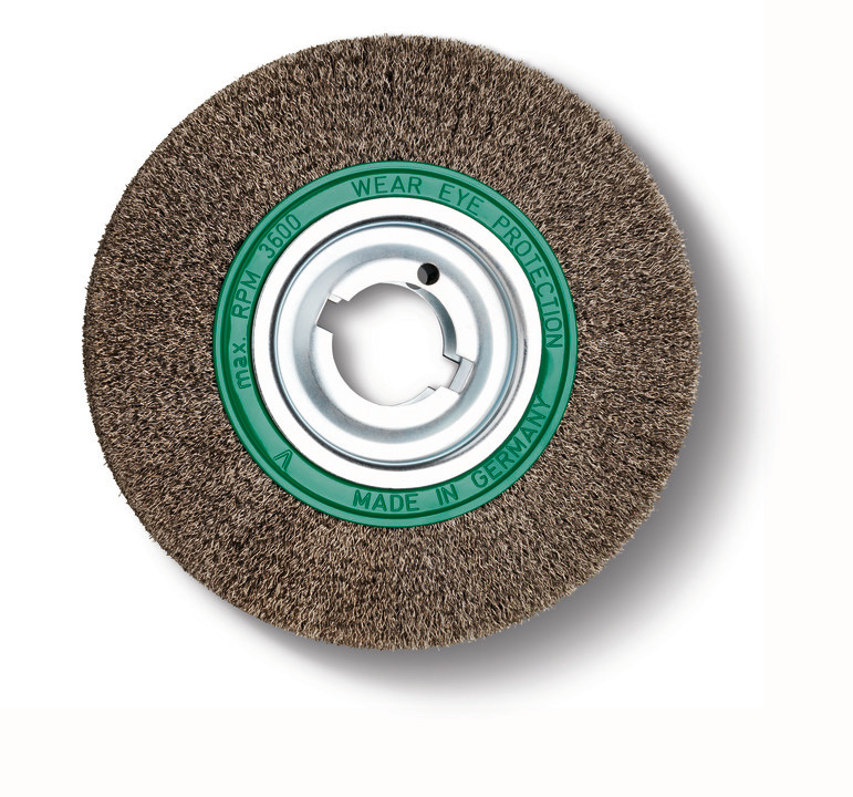 Steel wire brush|Ø 250 mm x 60 mm, with very high wire drawing strength for highly efficient use, mounting hole Ø 51 mm. 0.2 mm thick wire for thin-walled pipes and profiles. 0.35 mm-thick wire for universal use. 0.5 mm thick wire for thick-walled pipes and profiles and great deburring results.|Stainless steel version
